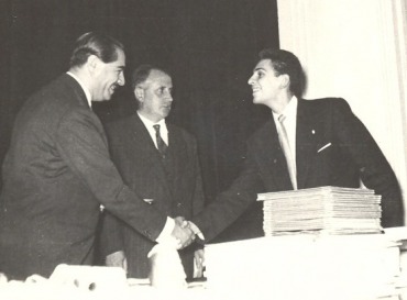 Orkestramız Tevfik Fikret Sahnesinde, 5 Nisan 1959 - Matematiğe olduğu kadar elişine, resme, dilbilgisine, dillere de meraklıydım. Lisede Fransızca, İngilizce’den sonra, Alman Lisesi kurslarında Almanca öğrendim. Bu merakım sonraki yıllarda İtalyanca ve İspanyolca ile sürdü.