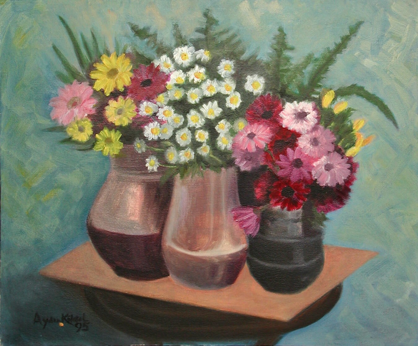 Bakır Kapta Gerberalar, Pastel, 1992, 32x50 cm
