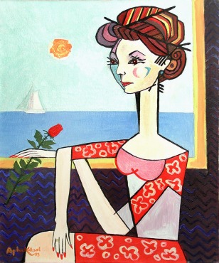 Picasso'ya Gore Gülden, Elinde Bir Gül ile, Yağlıboya, 1993, 50x60 cm