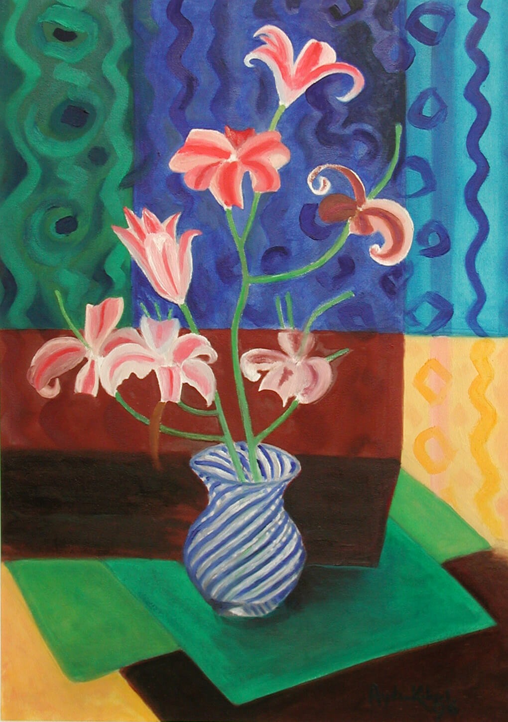 Hint Şali Üzerinde Yapay Ataturk Çiçekleri, Yağlıboya, 1994, 50x60 cm